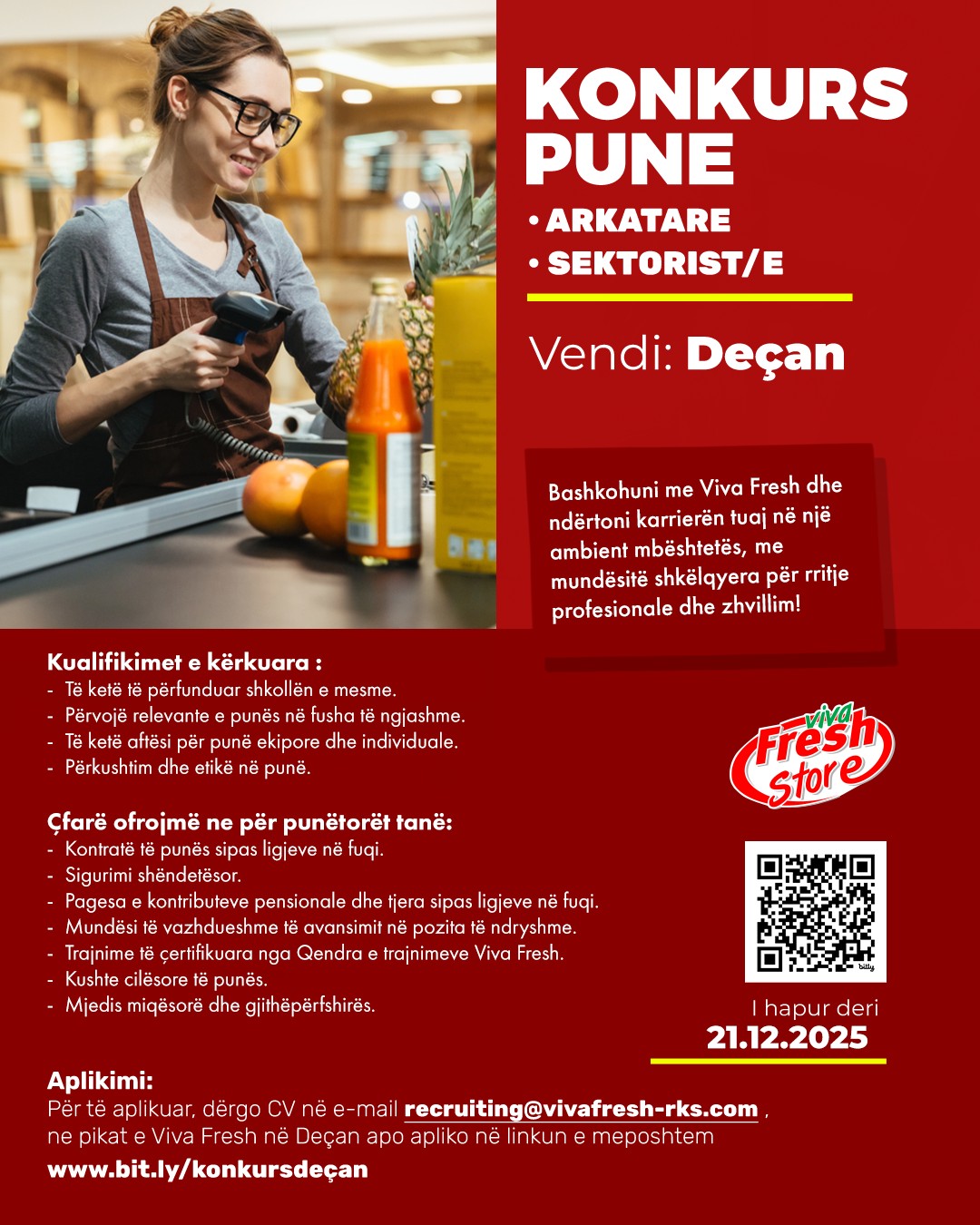 – Kontratë të punës sipas ligjeve në fuqi,